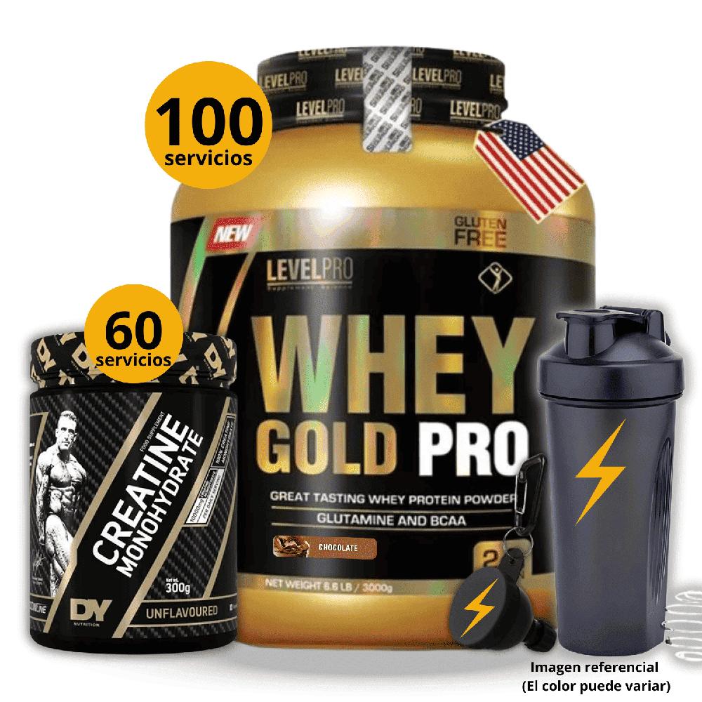 Proteína Whey gold pro de 3kg Chocolate -Creatina DY de 300gr - regalos