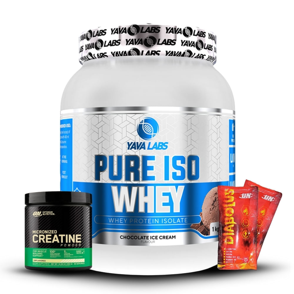 Proteína Yava Labs Iso Whey 1Kg Chocolate+Creatina ON 300Gr+2 Diabolus