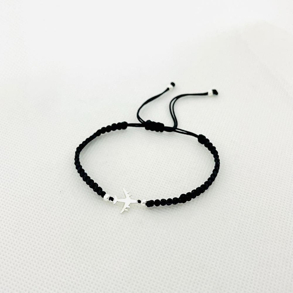 Pulsera de Hilo con Dije Avión y Billas de Plata 950 Modelo Talis