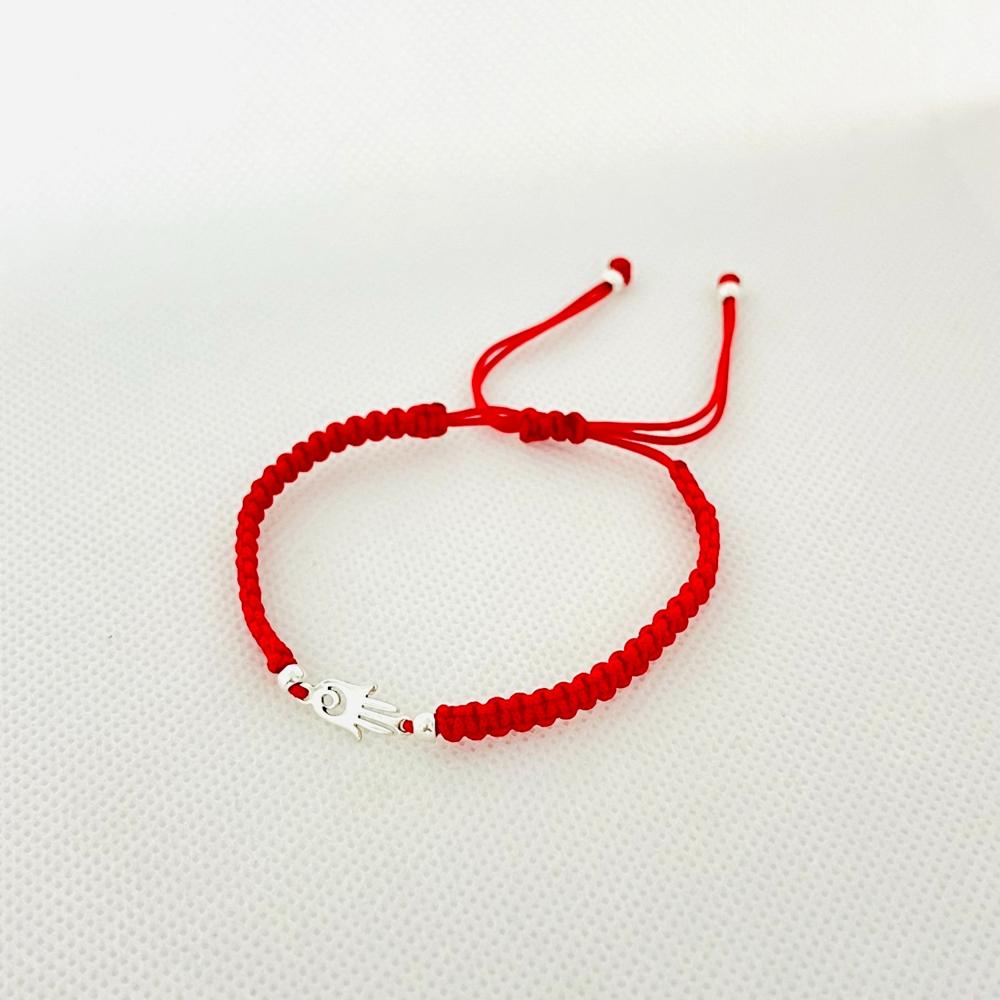 Pulsera de Hilo con Dije Mano de Fátima y Billas de Plata 950 Modelo Talis