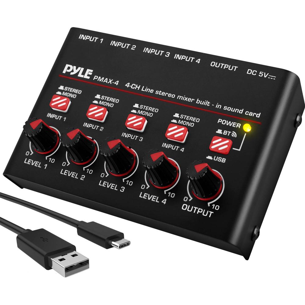 Pyle Pro PMAX4 Mezclador Compacto de 4 Canales para Streaming y Podcasting con Bluetooth 5.0