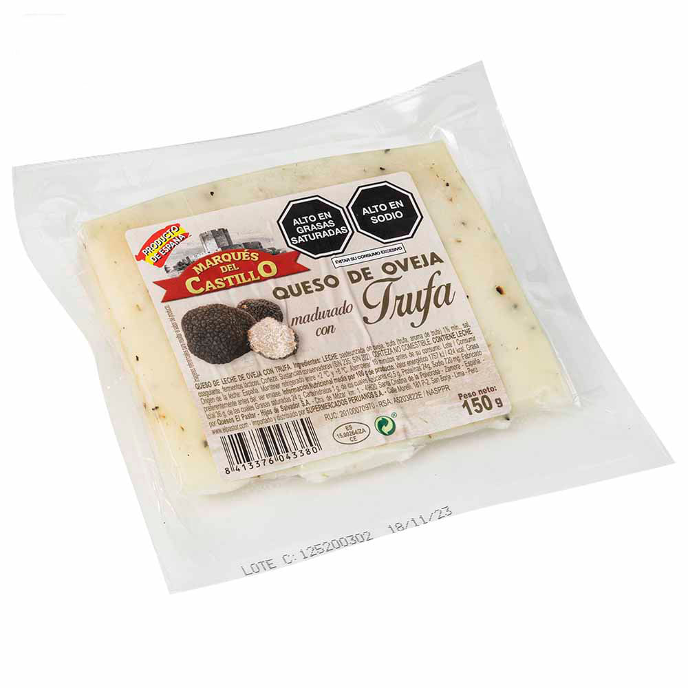 | Composición/Origen | Ingredientes: LECHE pasteurizada de oveja , (Trufa,aroma de trufa)1% mín., sal, secuestrante:cloruro cálcico, coagulante, FERMENTOS LÁCTICOS y Corteza: conservadores E-235 y E-202. ORIGEN: ESPAÑA |