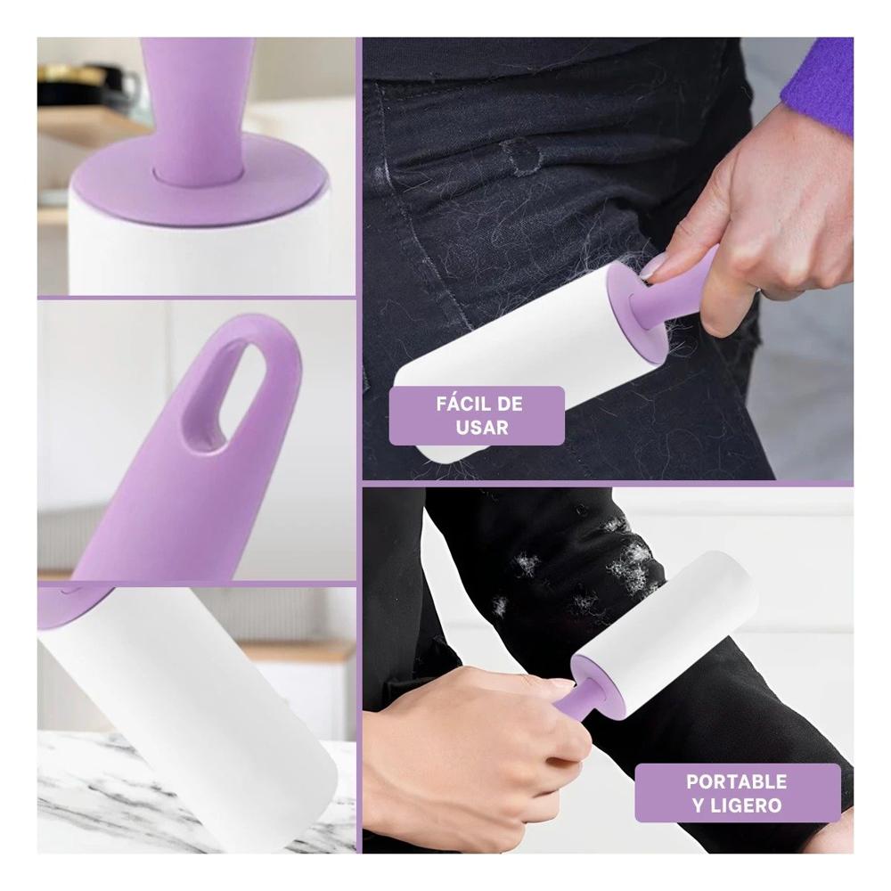 Quitapelusa en Rodillo Reutilizable para Prendas en Hogar y Exteriores Lila Pro