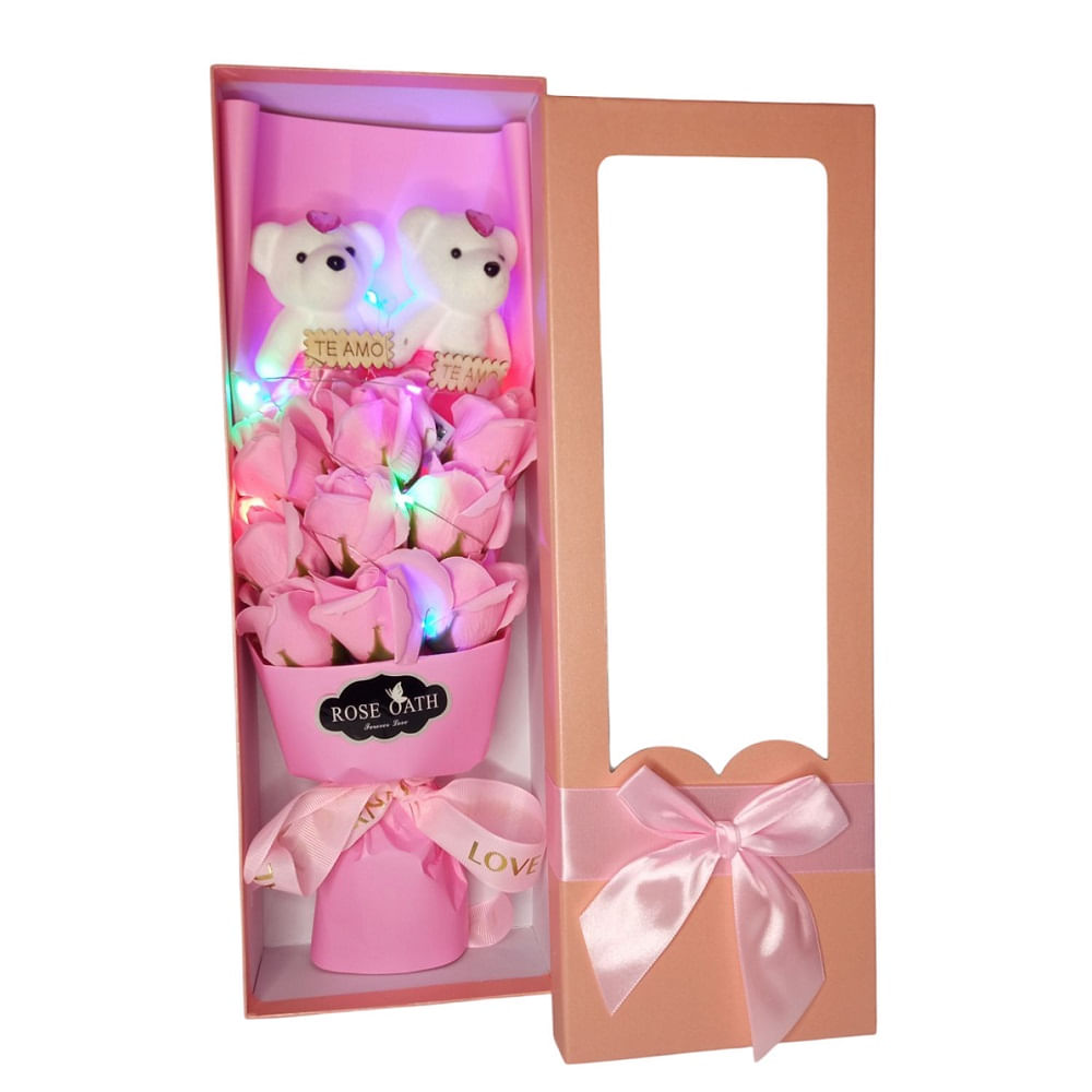 Ramo de Rosas de Jabon led con Peluches dia de la madre Rosa