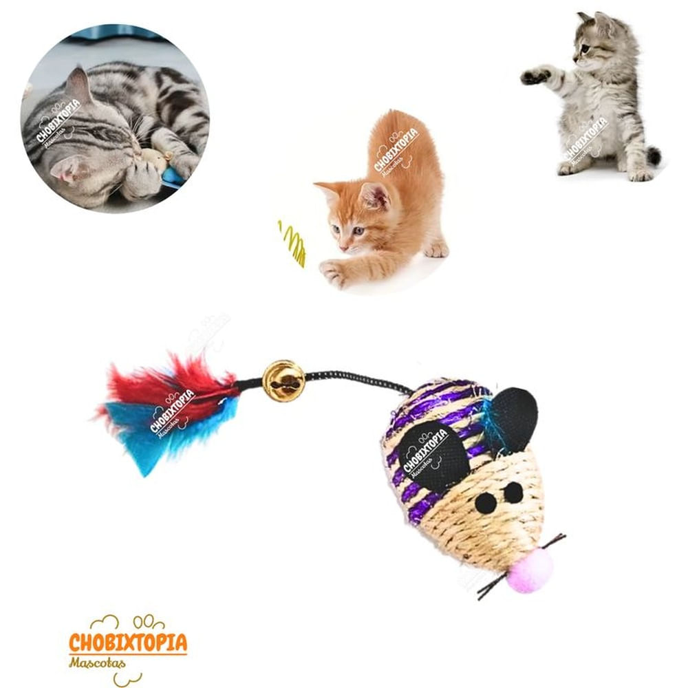 RATON DE PAJA CON PLUMA Y CASCABEL PURPURA