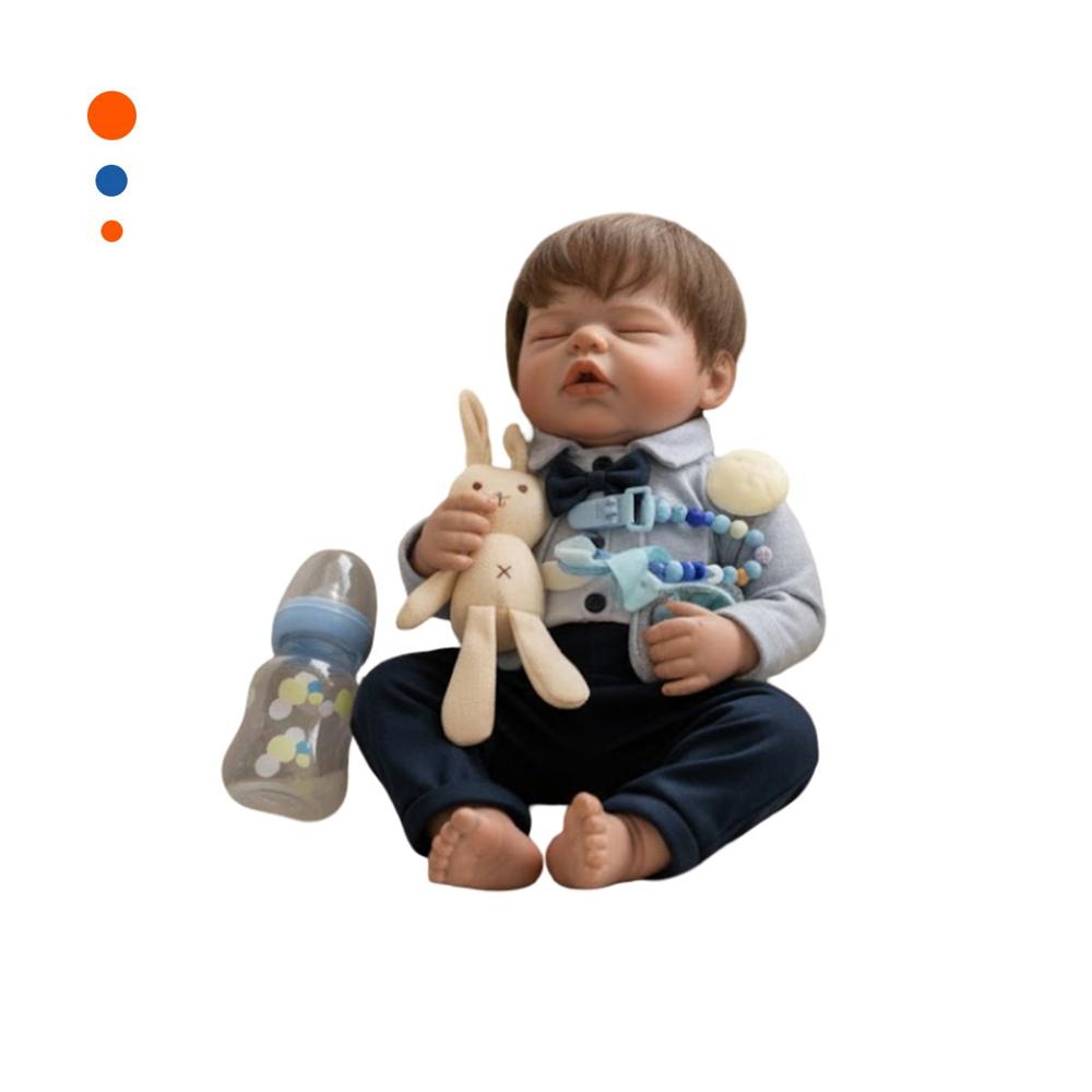 Recien Nacido Sintetico 48cm con ropa formal Plomo y Azul Noche Afecto Y+Papel Regalo