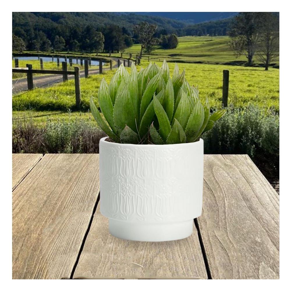 Recipiente Cilindrico Blanco 13x13cm De Ceramica Para Tulipanes Y Casa Y+Regalo Sticker