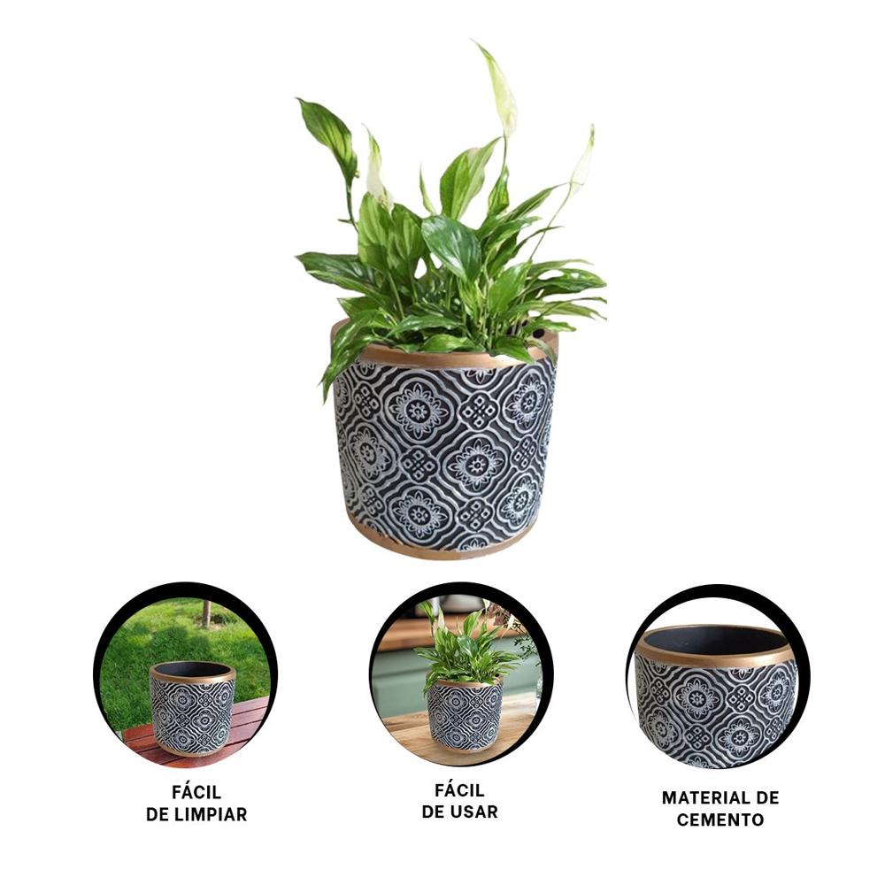 Recipiente Cilindro Cemento 11x10.5cm Negro Blanco y Dorado Mandala Y+Ligas Regalo