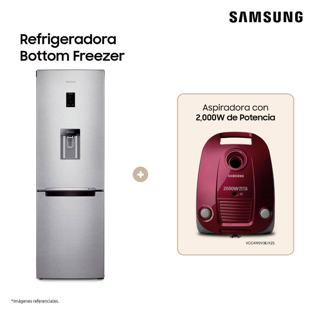 Refrigeradora Samsung Bottom Freezer 321L RB33J3830SA/PE + Aspiradora de arrastre con 2000 W de potencia color Vino Rubí VCC4190V3E/XZS