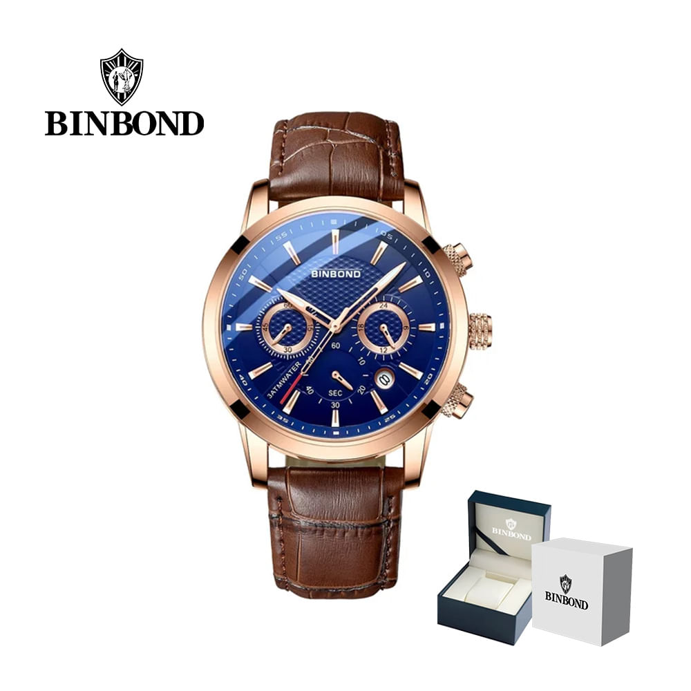 Reloj BINBOND para Hombre - Azul/Oro - Cuero