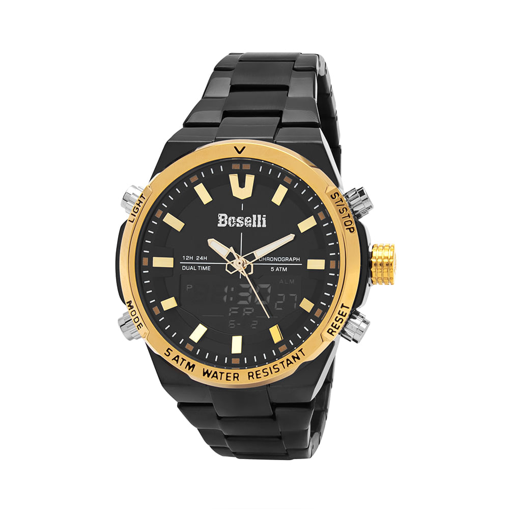 Reloj Boselli B517 Acuático Doble Hora Color Negro con Oro