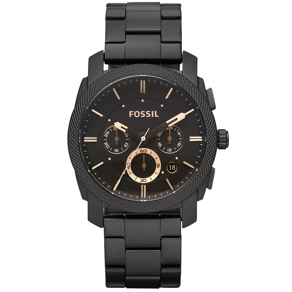 Reloj Fossil Machine FS4682 Para Hombre Fecha Cronómetro Acero Inoxidable Negro