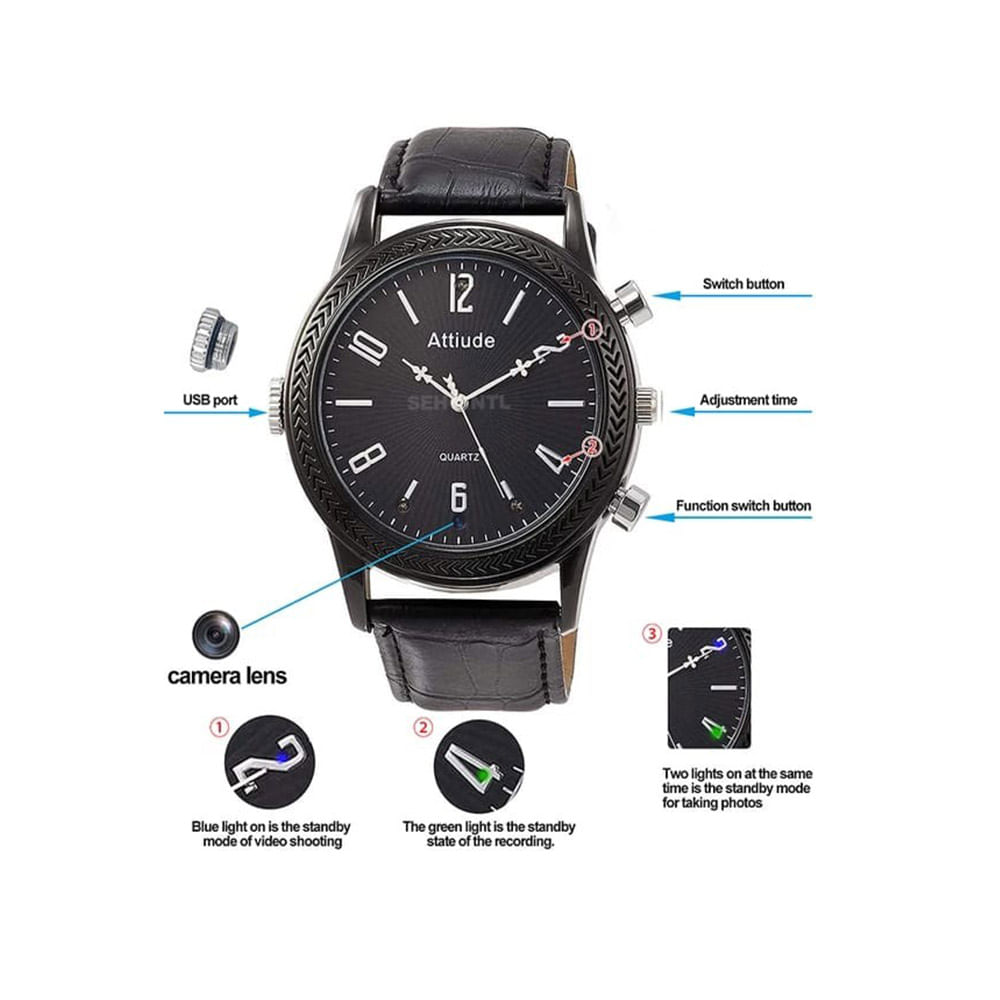 Reloj Infrarrojo Espía 32gb Irm002 C5 Elegante Correa Negra, Visión Nocturna Fotos Audio Video Fullh