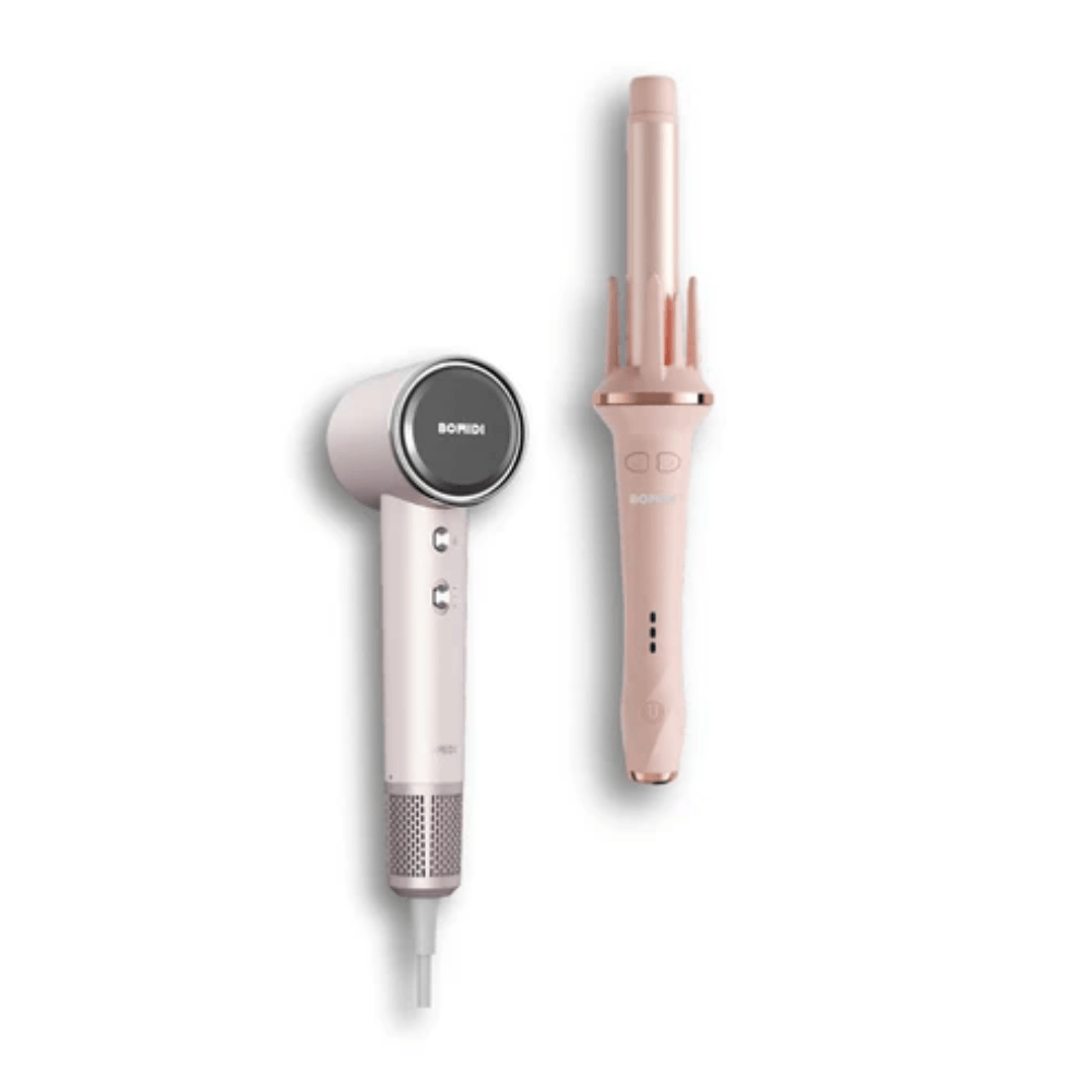 Rizador de Cabello HC02 Rosado y Secador de Cabello HD04 Rosado