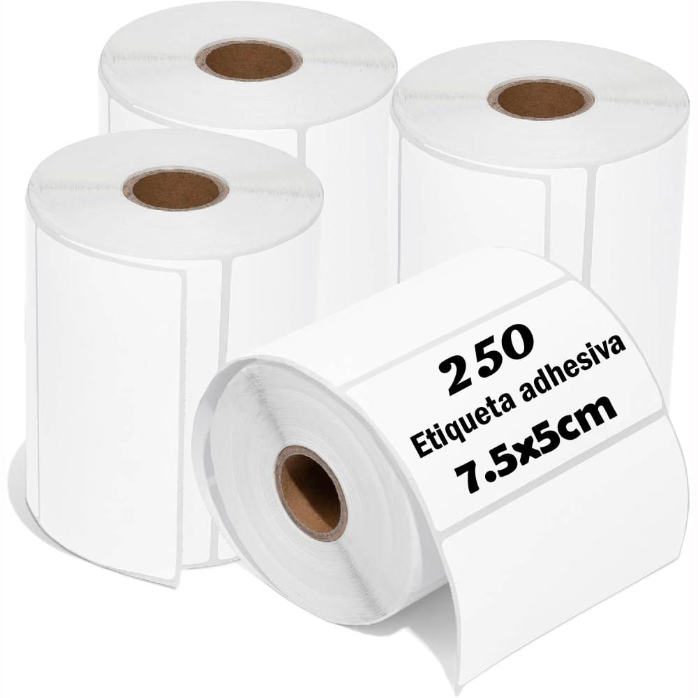 Rollo 250 Etiqueta Termica Adhesiva 7.5x5cm Pack 5 Rollos