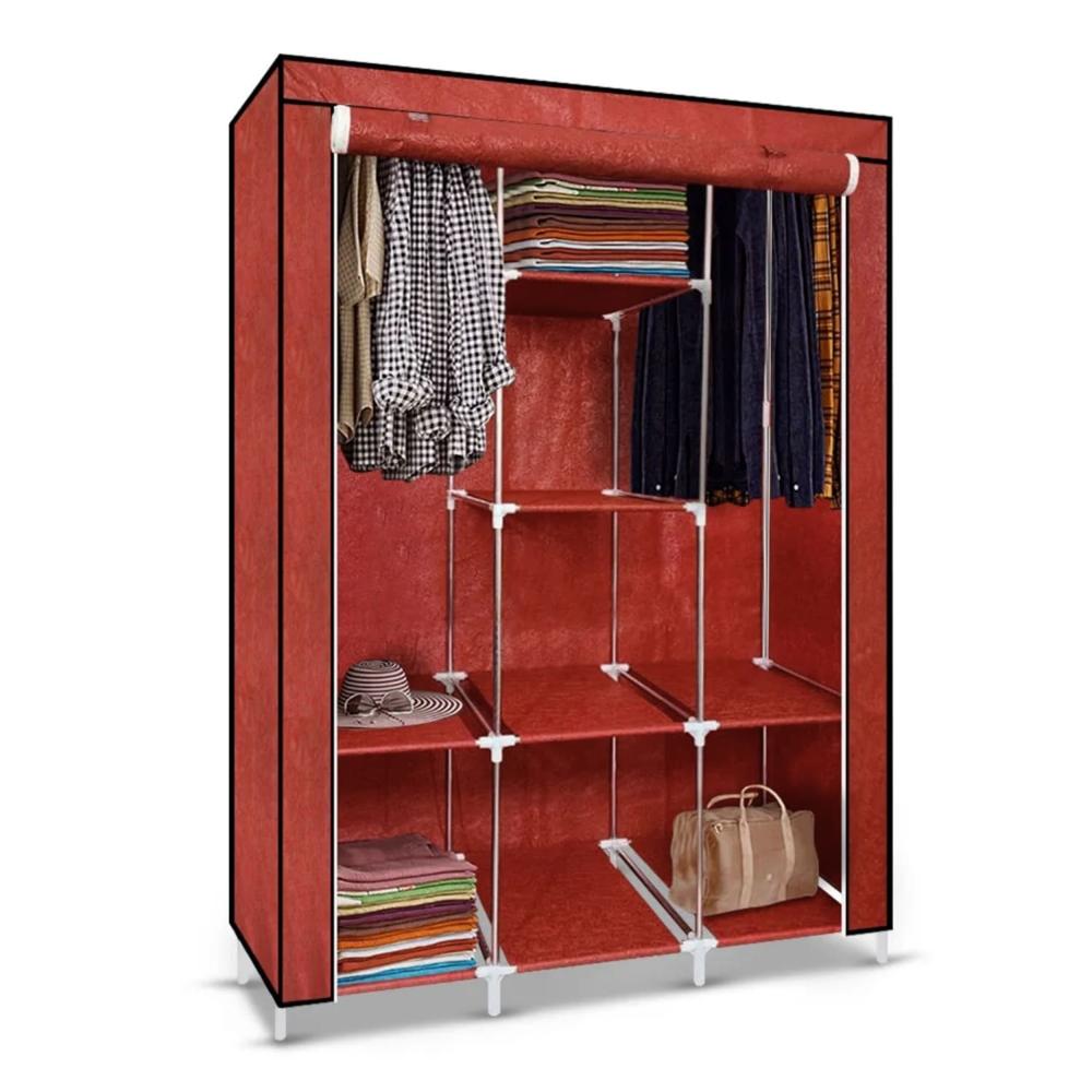 Ropero Armable de Tela Armario de 3 Cuerpos con 8 Divisiones Rojo