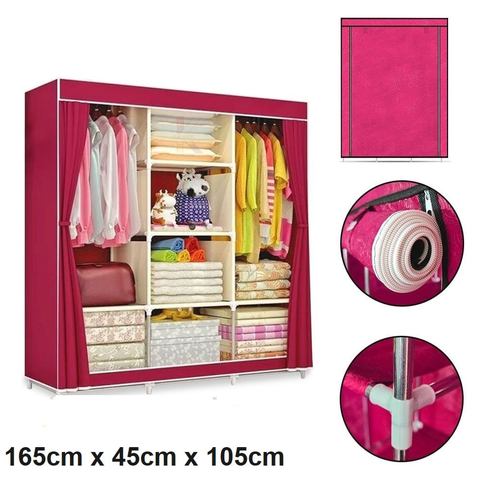 Ropero de Tela 3 Cuerpos 165cm x 45cm x 105cm Rosa