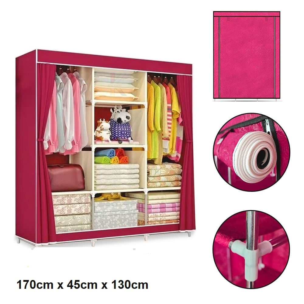 Ropero de Tela 3 Cuerpos 170cm x 45cm x 130cm Rosa