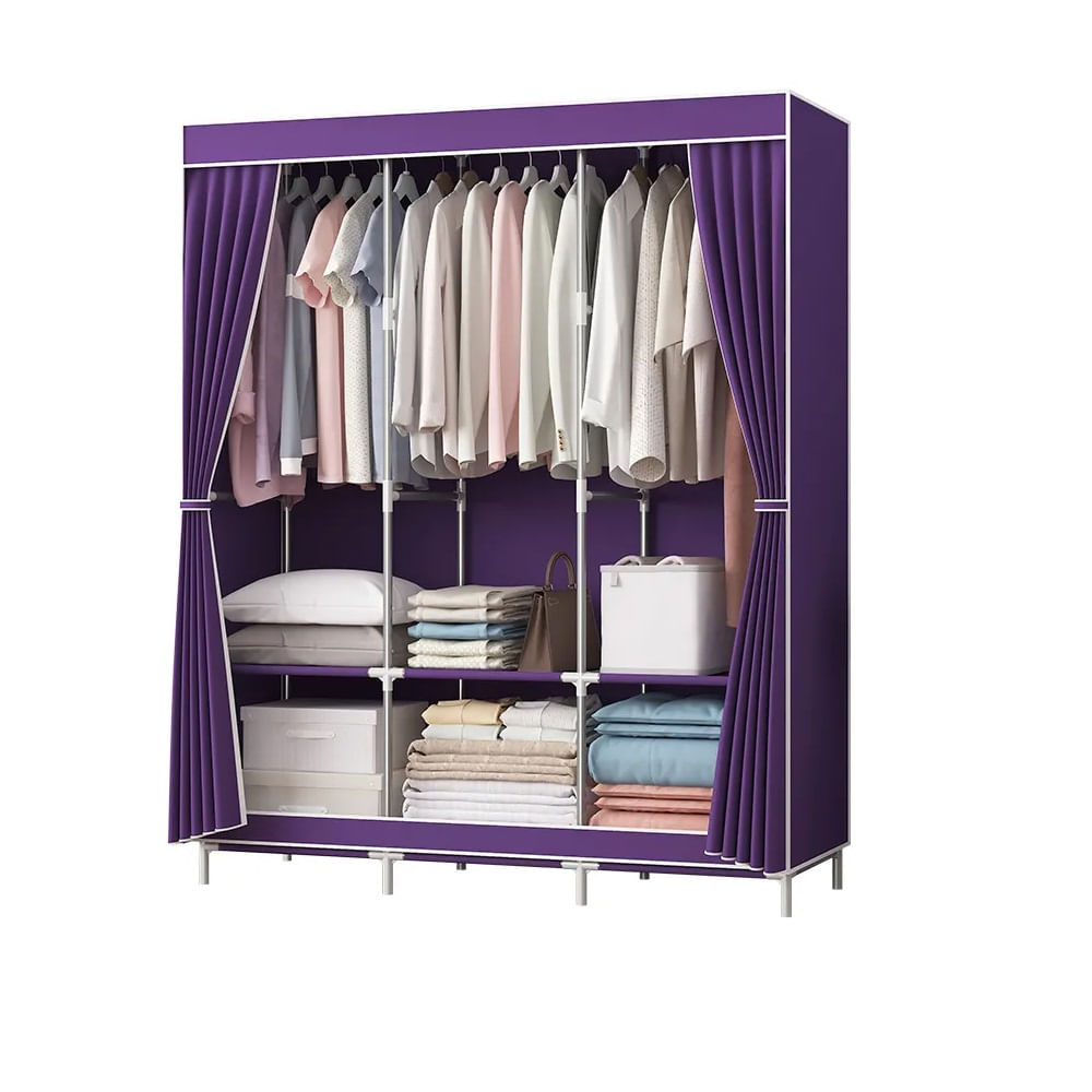 Ropero de Tela 3 Cuerpos 2 Pisos Morado