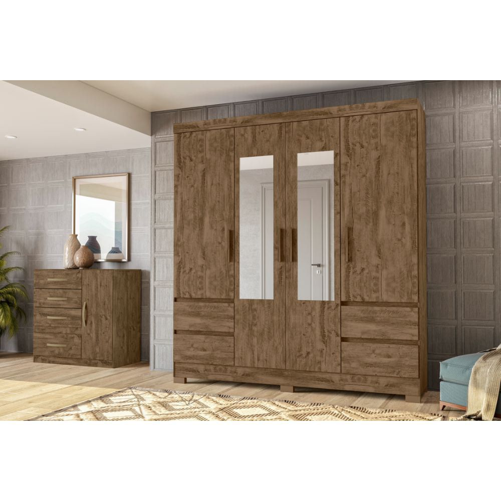 Ropero Roma 4 Puertas 4 Cajones + Espejo