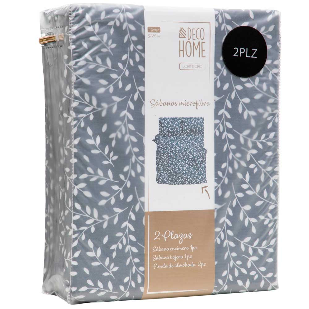 Sábana DECO HOME Mic 2 Plazas Flore Bla/Gri