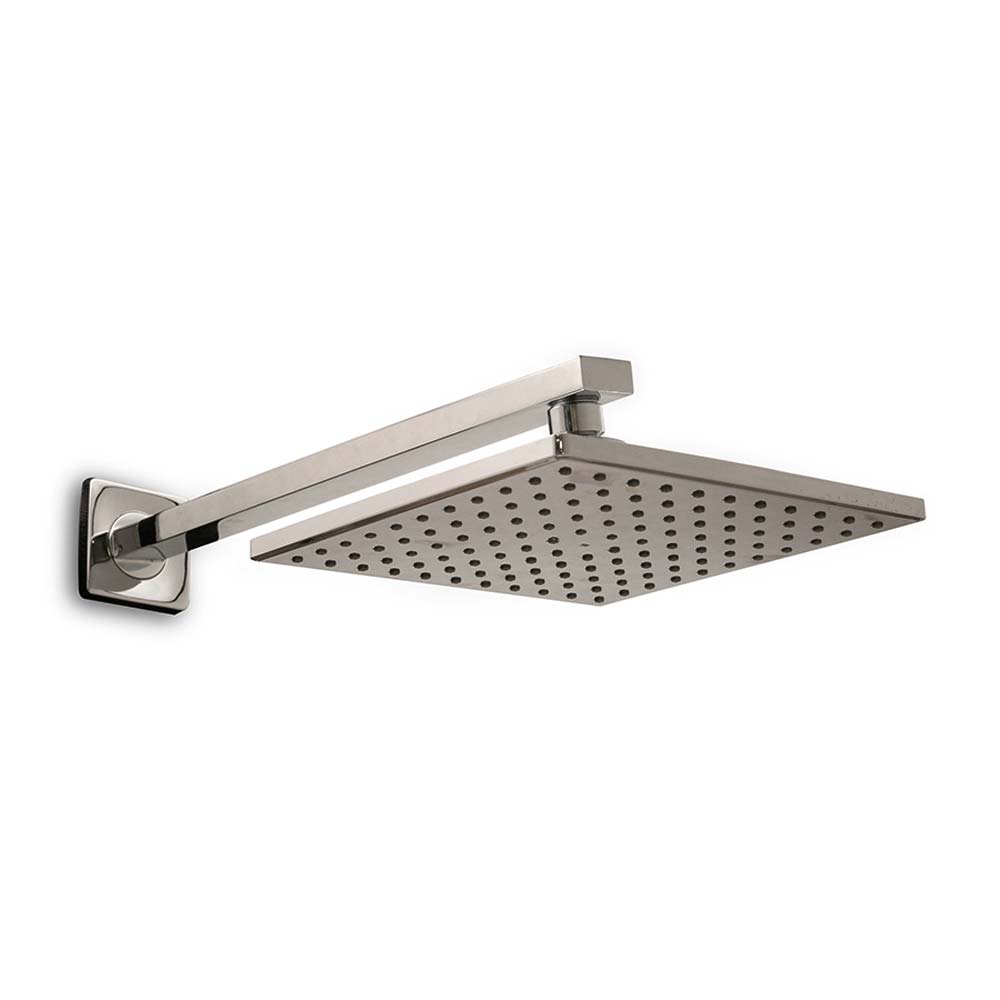 | Características | Salida de ducha hecho de cuerpo de Bronce con cabezal de ABS en acabado cromado. Cabezal tipo española cuadrada de 20 x 20 cm con giro frontal a 45°, cuenta con 1 tipo de chorro, canopla de metal cromado. |