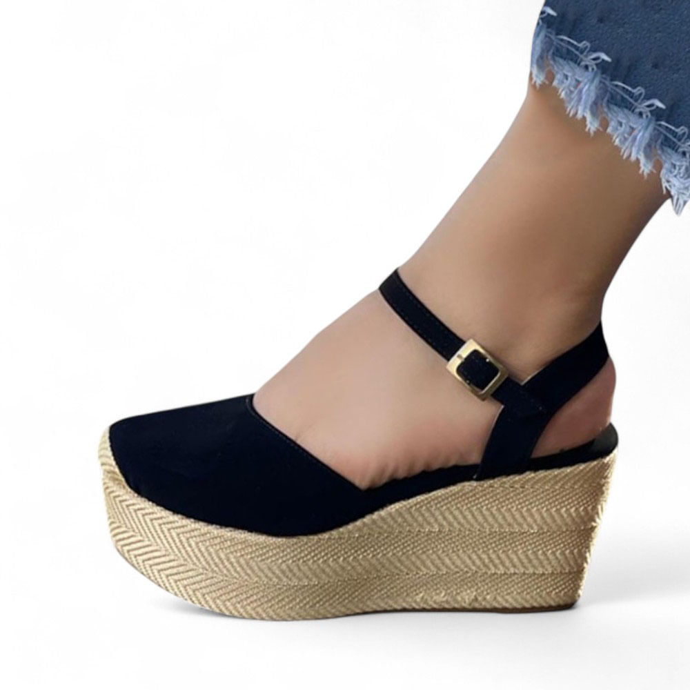 Sandalia Mujer Forro Soguilla Taco 7 1022L-55 Color Negro