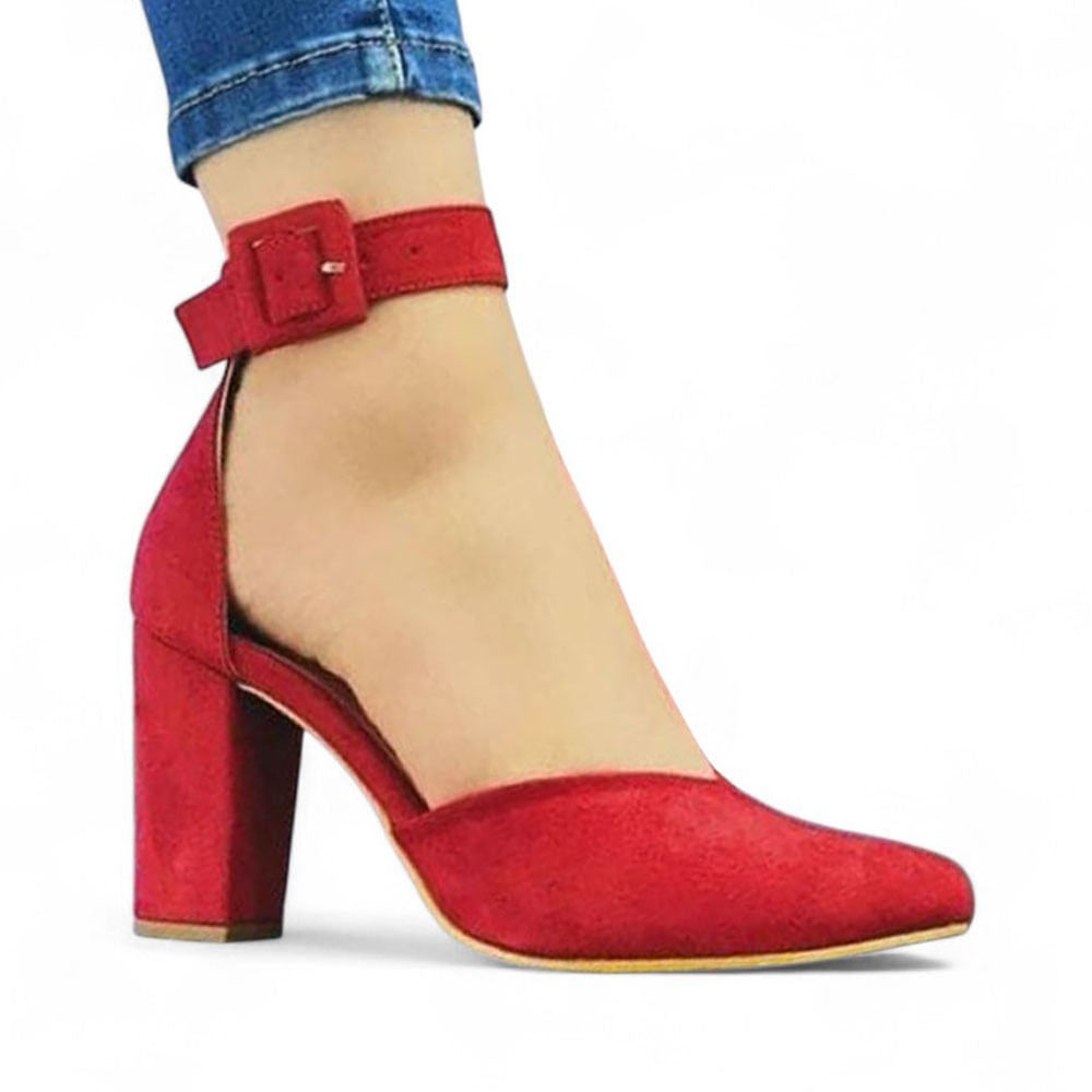 Sandalia Mujer Moderna Gamuza 2086L-52 Taco 7 Color Rojo