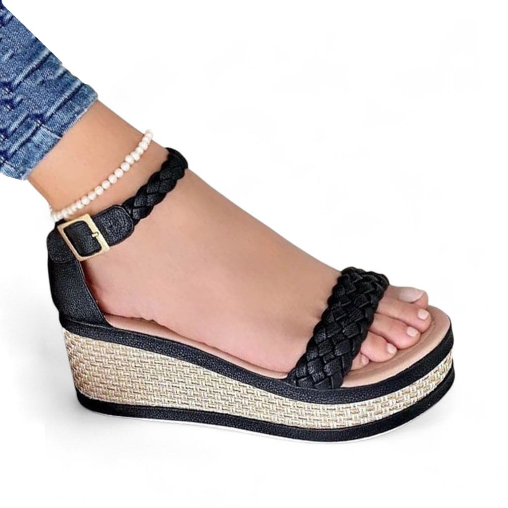 Sandalia Mujer Taco 7 Trensitas 1022L-53 Color Negro