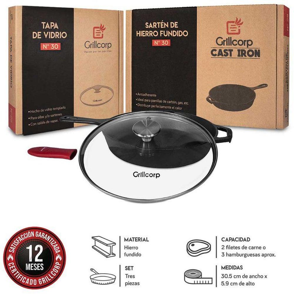 Sartén n°30hf + tapa de vidrio templado + mango de goma