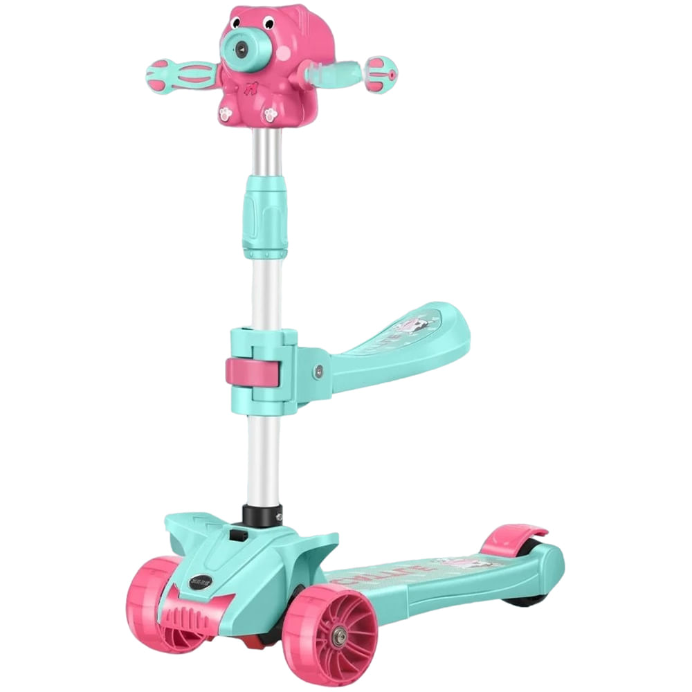 Scooter Musical Lanza Burbujas con Luces Plegable Verde