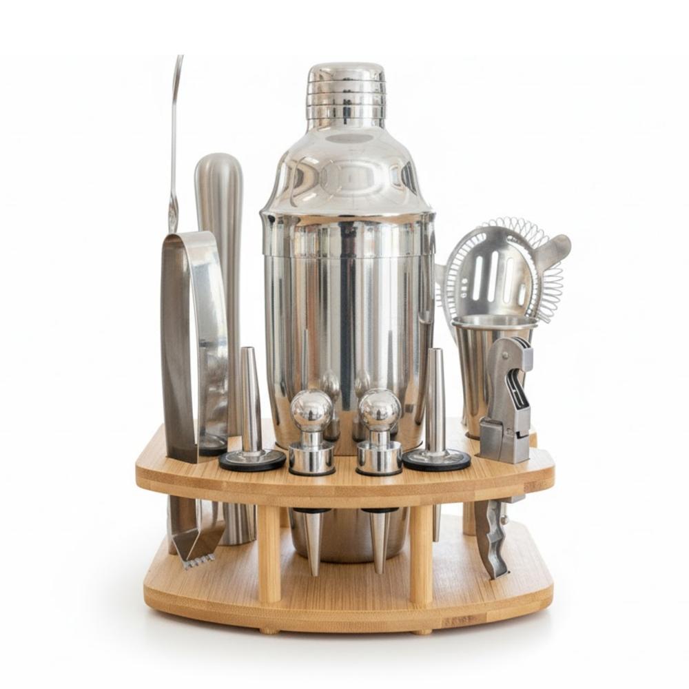Set Bartender 12 Piezas con Base de Bambú Profesional