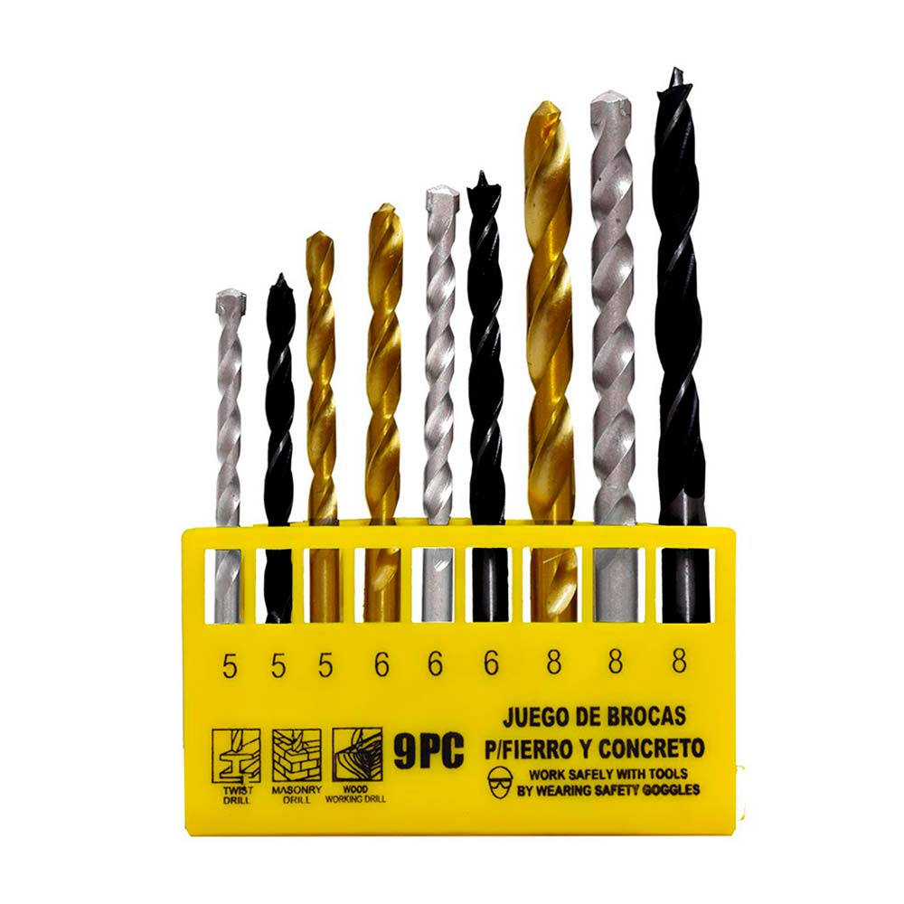 Set de Brocas para Madera, Concreto y Metal Kamasa de 9 Piezas
