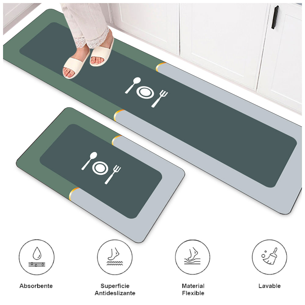 Set de 2 Alfombra Antideslizante Piso de Cocina Verde SJ6