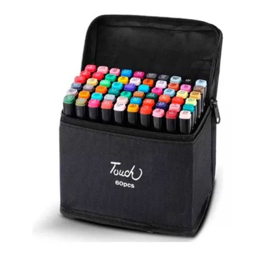 Set de 80 Plumones Marcadores Doble Punta con Estuche Arte Negro