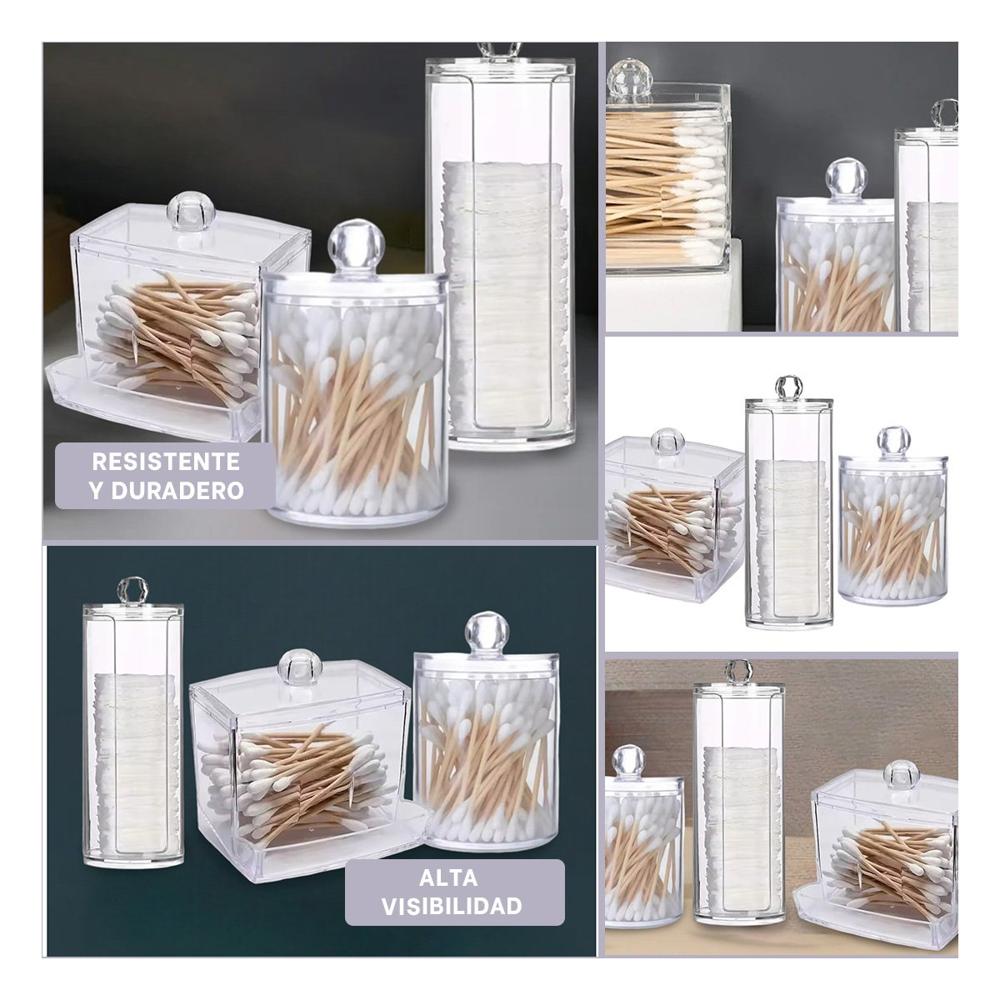Set de Contenedores de Acrilico Transparente para Hisopos y Algodon Uso Diario
