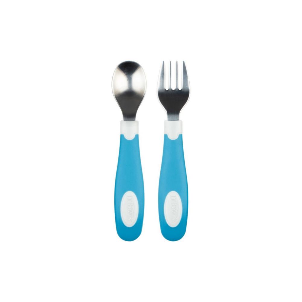 Set De Cuchara Y Tenedor Dr Browns De Agarre Suave Azul