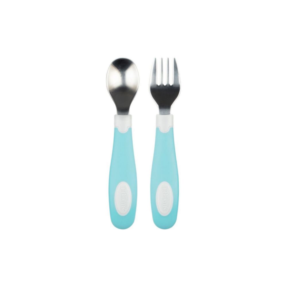 Set De Cuchara Y Tenedor Dr Browns De Agarre Suave Celeste
