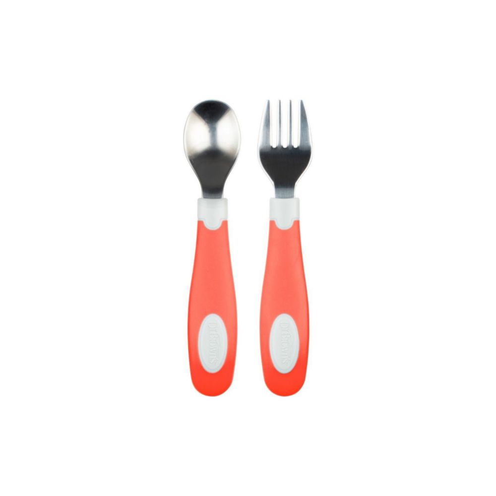Set De Cuchara Y Tenedor Dr Browns De Agarre Suave Rojo