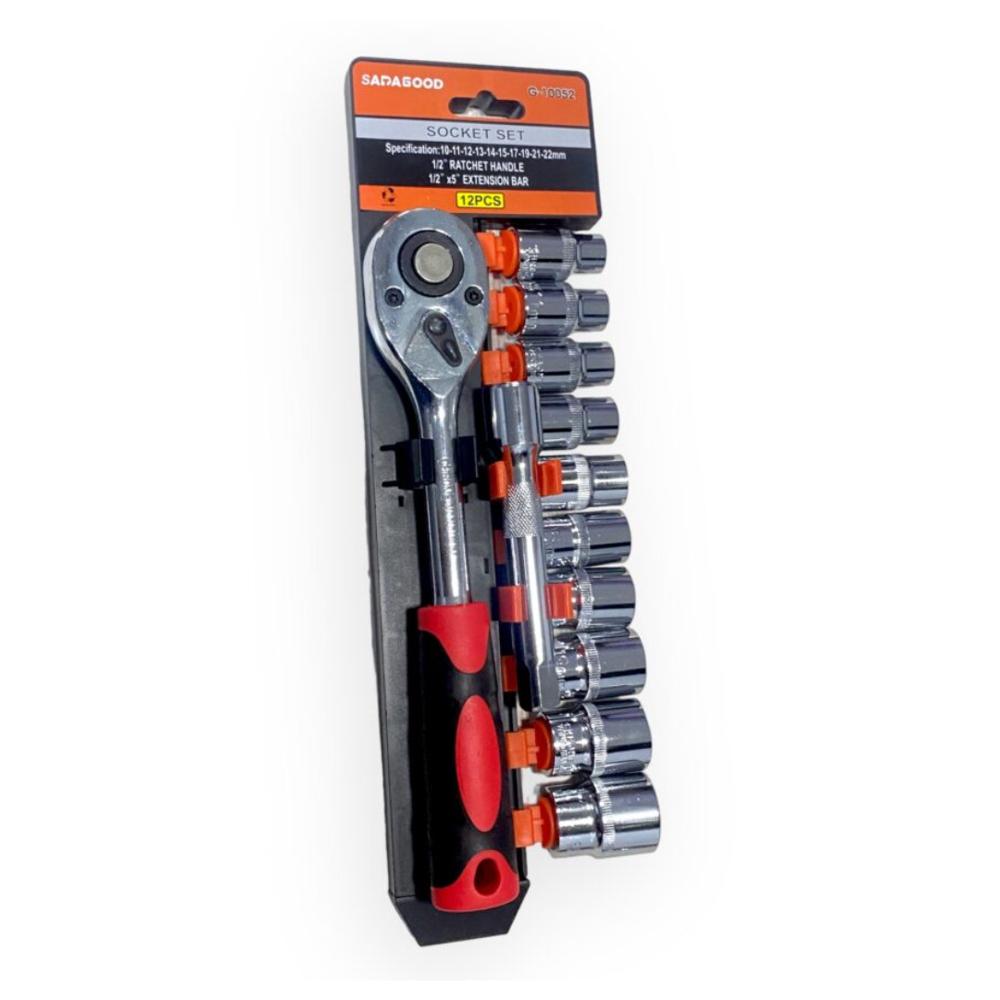 Set De Herramientas 12 Piezas Con Trinquete Y Dados De Acero Al Cromo Vanadio