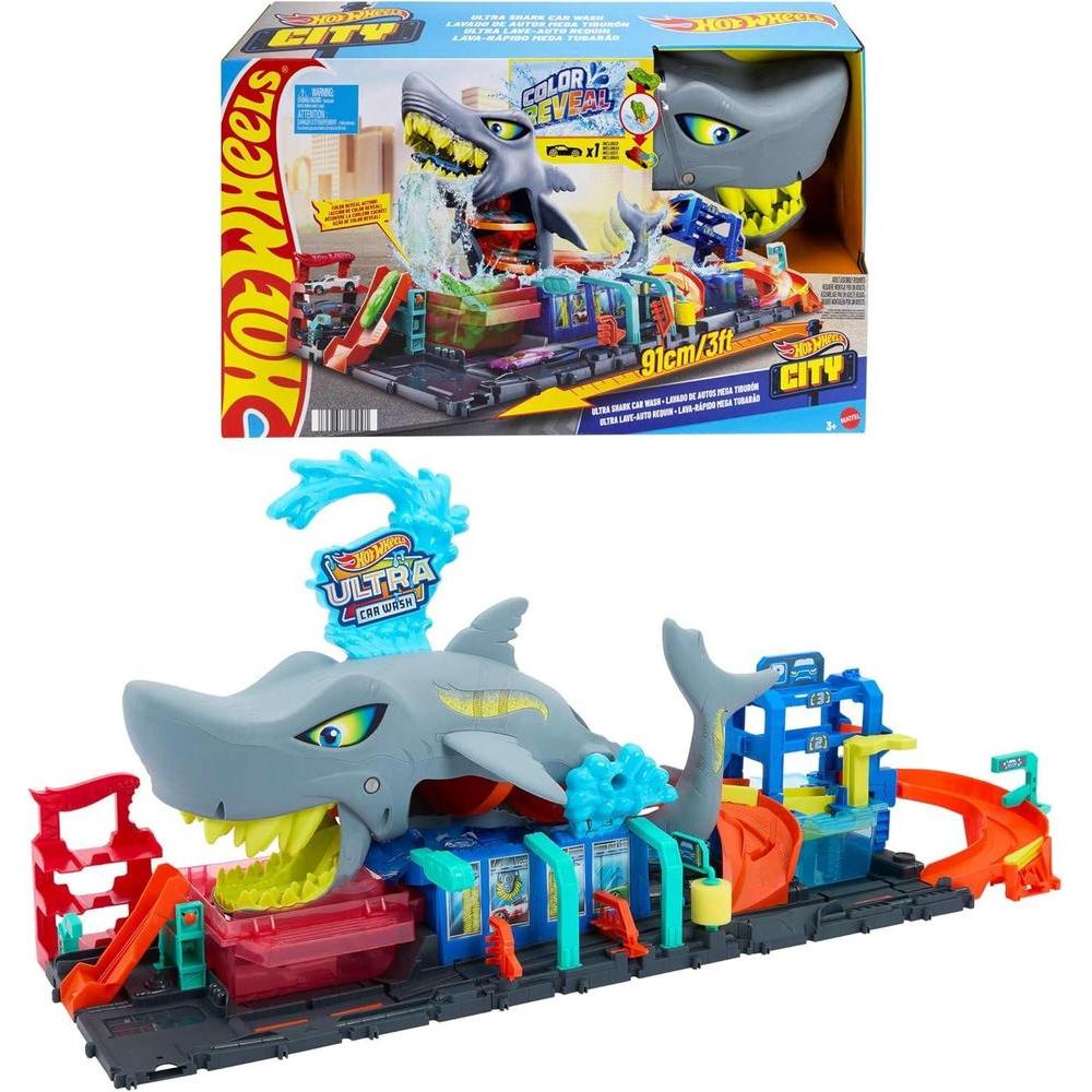Set De Juego De Pista Hot Wheels Ultra Shark Vehículo Color Cambiante