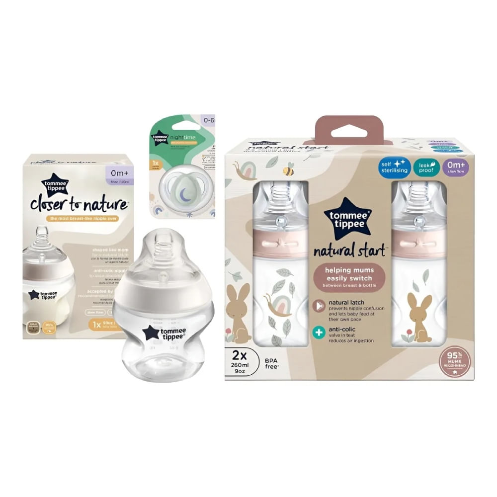 Set de Regalo para Recién Nacido Tommee Tippee con 3 Biberones y Chupón