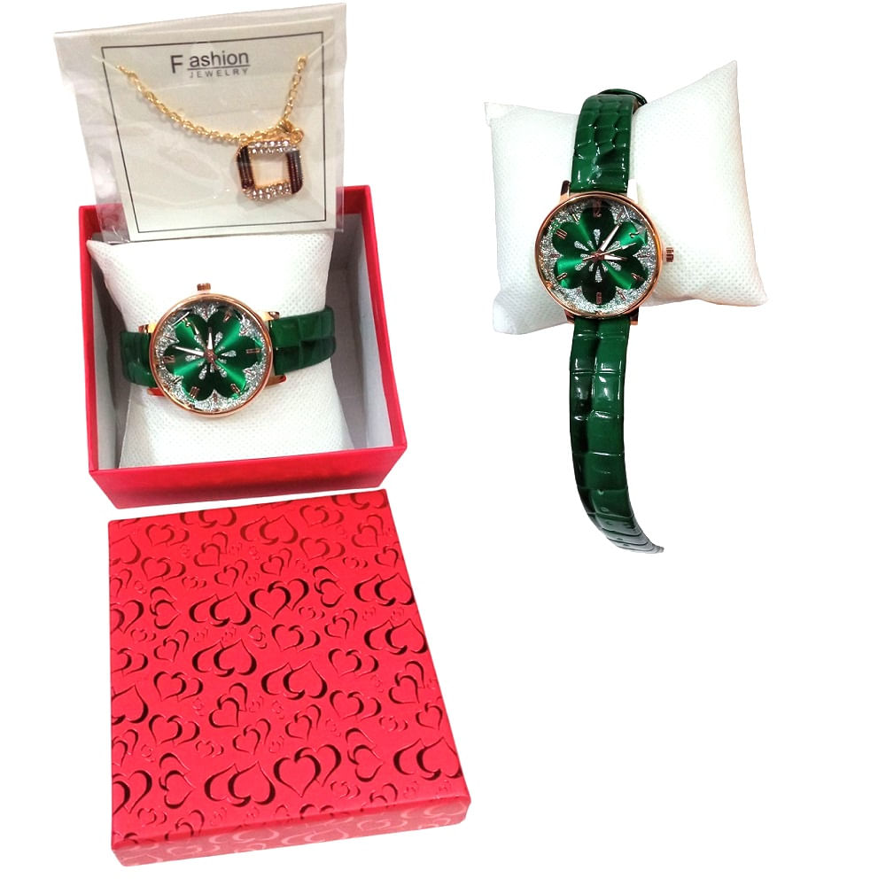 Set de Reloj Flor y Collar en Cofre Dia de la Madre Verde