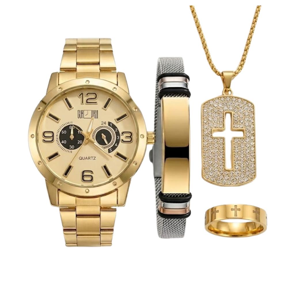 Set de Reloj para Hombres Collar Pulsera Dije y Anillo VT