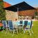 Set de terraza Aluminio Mesa + 6 Sillas reclinable + Sombrilla Orange
