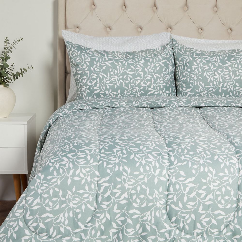 Set Edredón Kaz Micro Print Hojas Verde V2 - Set Edredón Kaz Micro Print Hojas Verde 1.5 Plazas V2