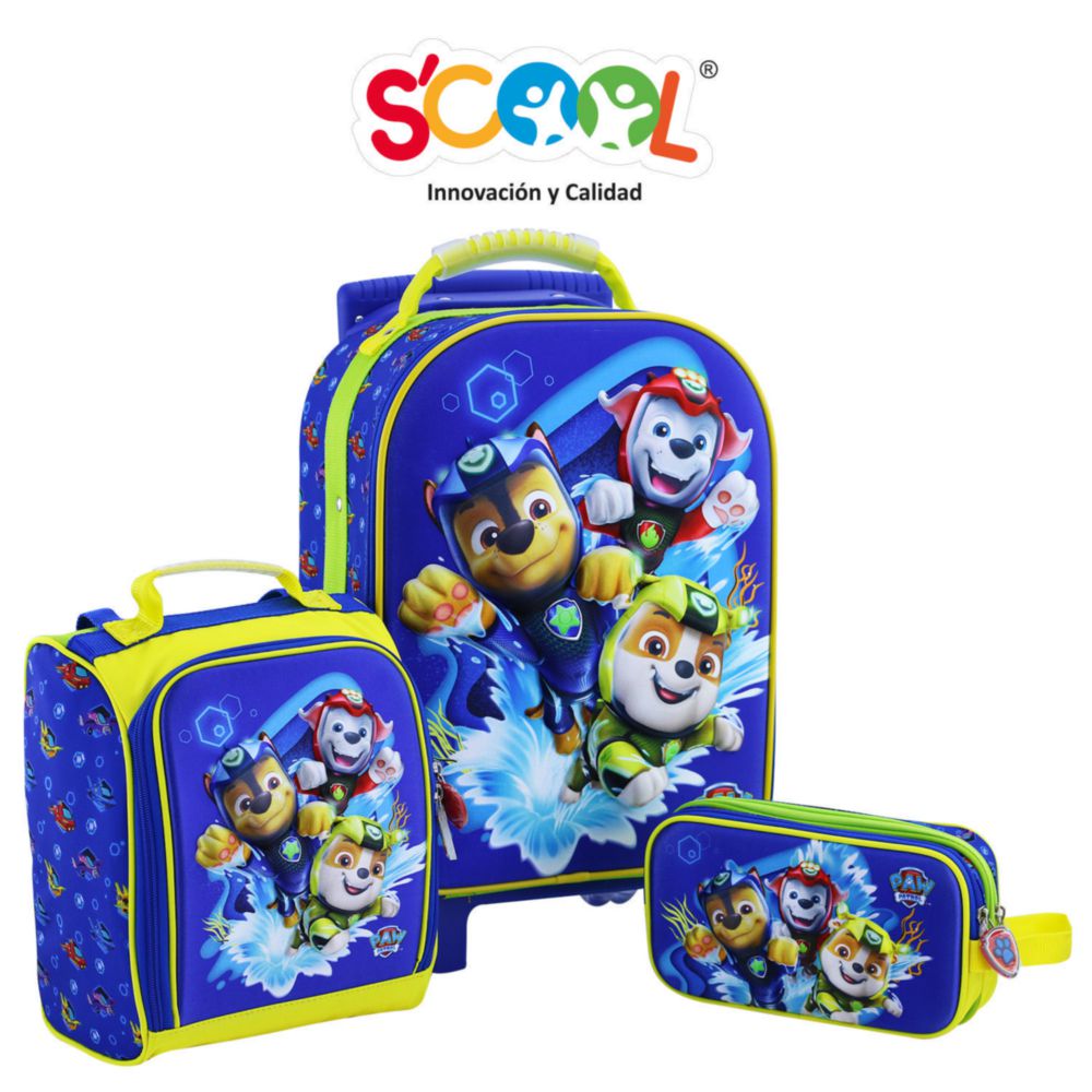 Set Escolar Mochila + Lonchera + Cartuchera Scool Magic 3D Mediana Paw Patrol