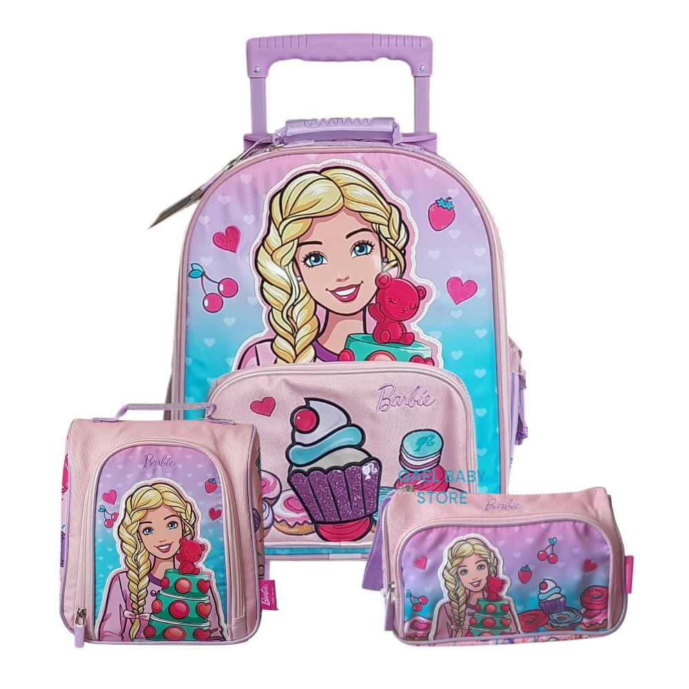 Set Escolar Primaria Maleta, Lonchera y Cartuchera Barbie Cupcakes
