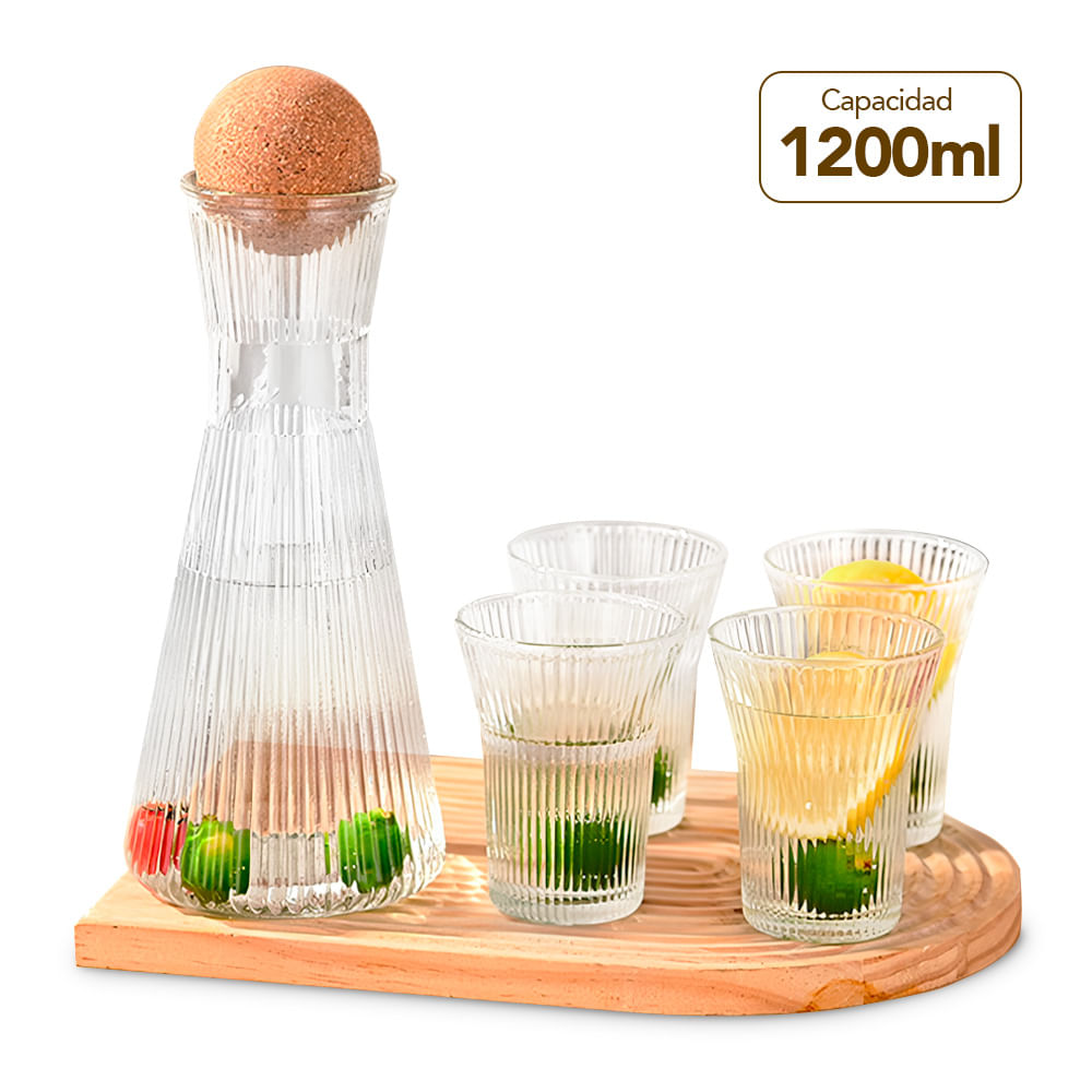 Set Jarra de Vidrio 1200 ML con Tapa de Corcho + 4 Vasos MS4