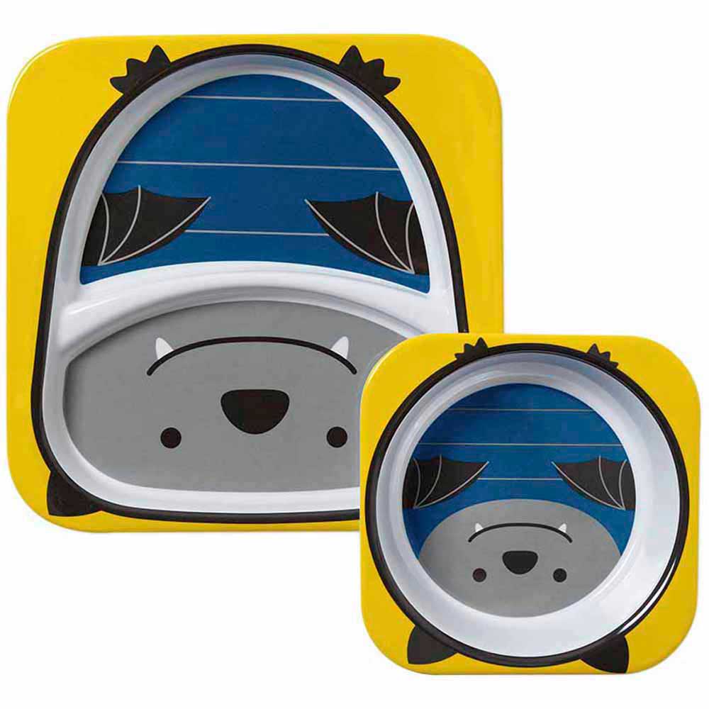 | Características | Plato y bowl con divertidos personajes y colores. No recomendable para uso en microondas. Edad recomendada: 6 meses a más. |